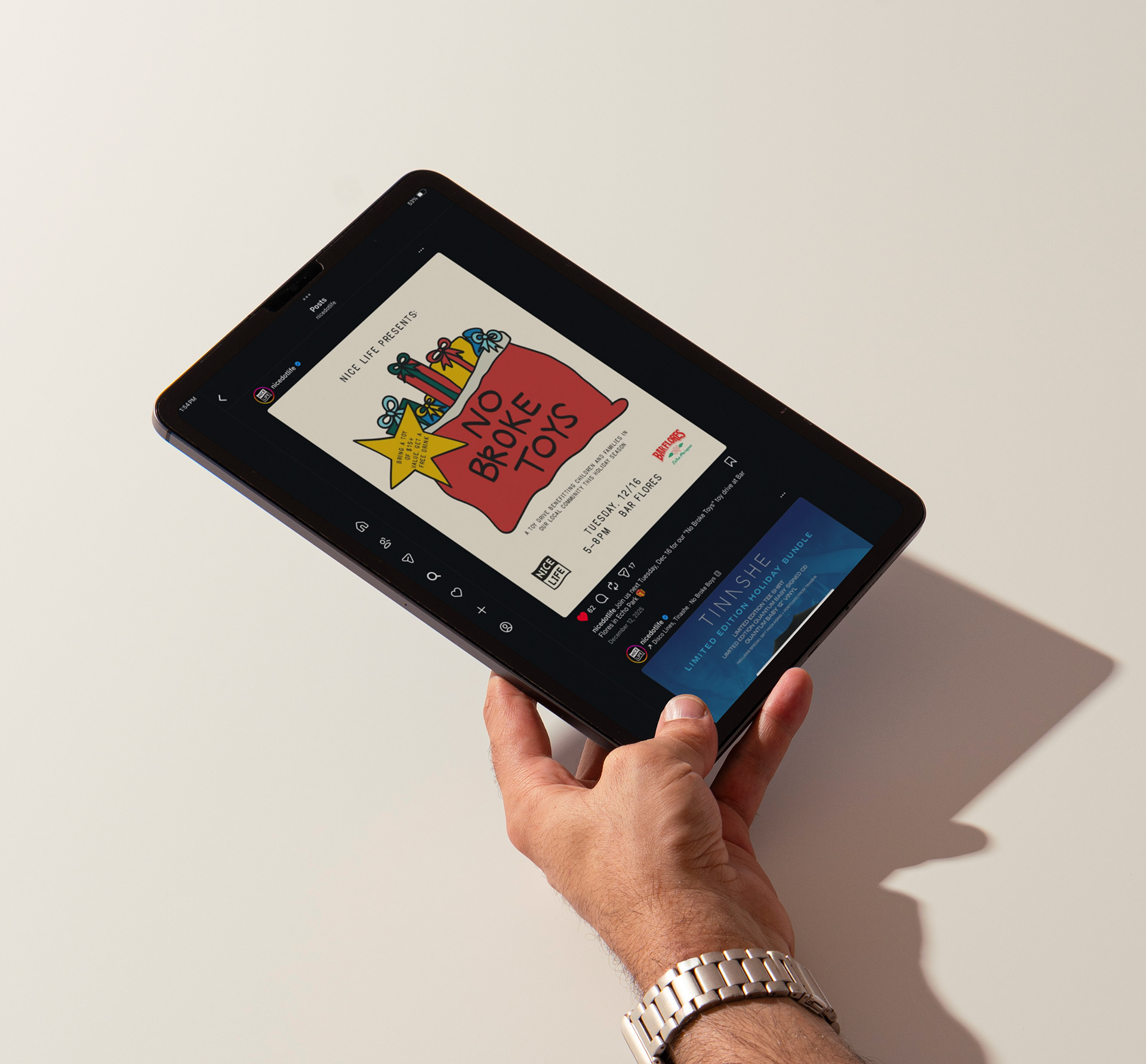 In addition, Tinashe's hit "No Broke Boys" was parodied as Santa's toy bag, which was then repurposed for a toy drive in Echo Park. The flyer and Instagram post can be found below.