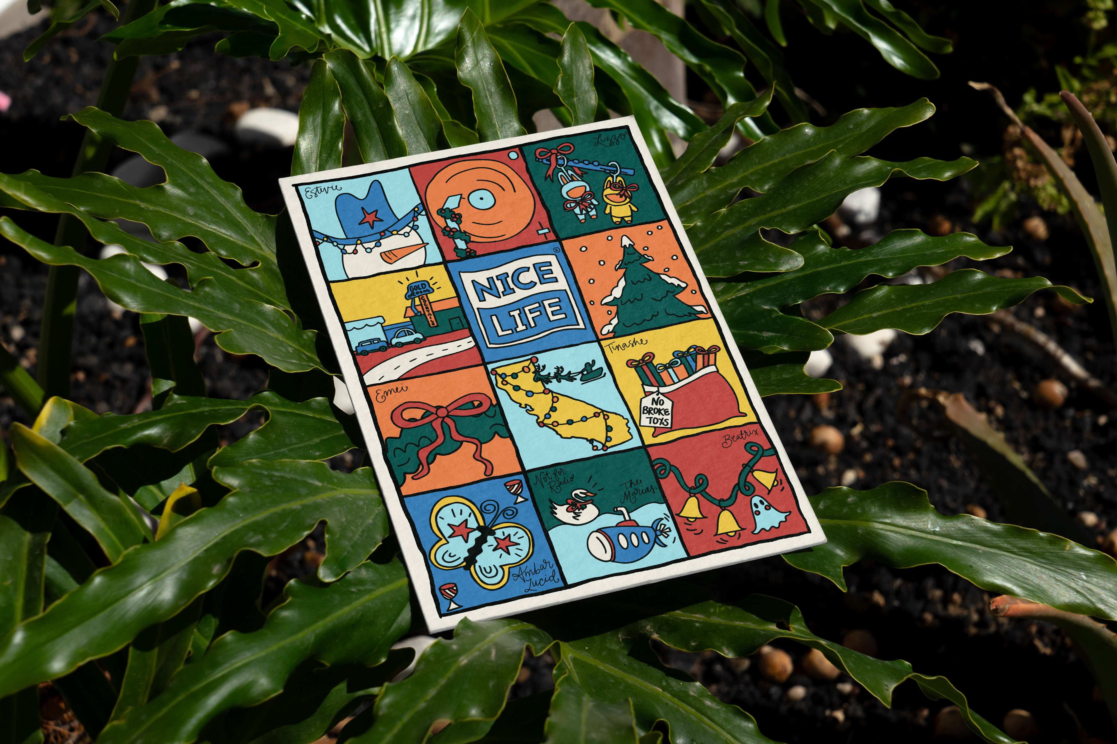Nice Life® is a record label and publishing company founded by Ricky Reed and based in Los Angeles, CA. For their 2025 holiday card, they sought out to have a Keith Haring-inspired illustration created to represent the label, their artists, and their neighborhood of Echo Park, LA.